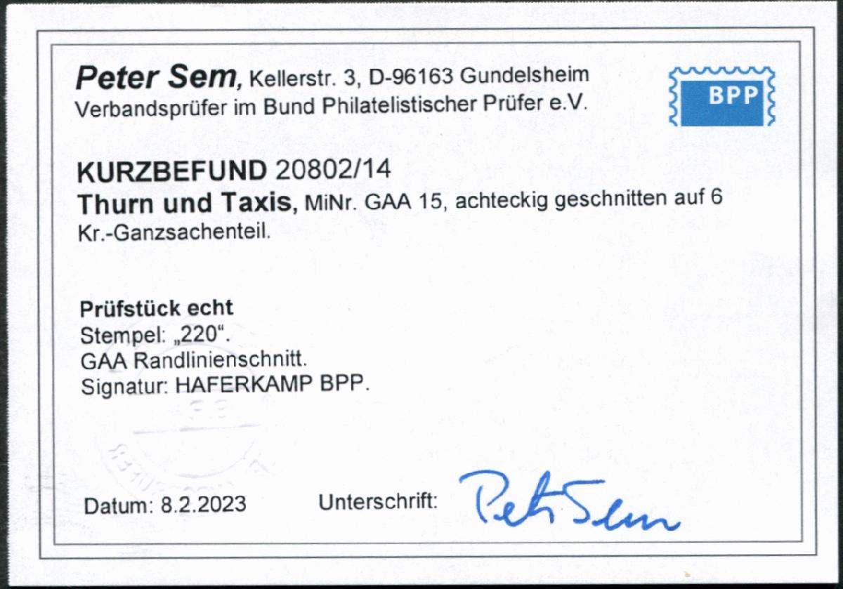 | Prüfgebiet: | Altdeutschland Thurn und Taxis |