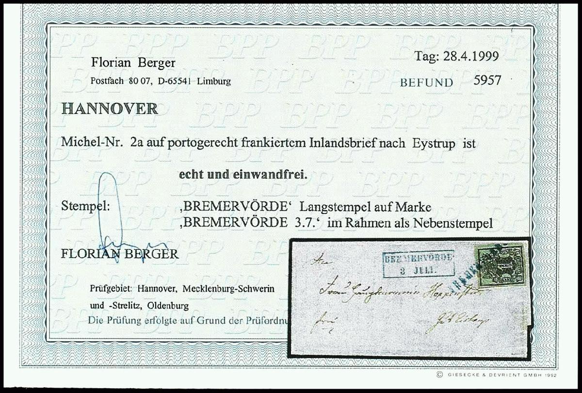| Zusatzinformationen und Suchstichworte: | Dr. Reinhard Fischer 193. Auktion 21. - 22. Juli 2023 Los 264 Altdeutschland Hannover "BREMERVÖRDE", L1 klar auf Marke und nebengesetzter Ra2 mit Datum vom 3.7 auf Inlandsbrief mit 1 Gutegroschen, adressiert nach Eystrup, minimale Altersfleckchen, Fotobefund Florian Berger BPP Ausruf 70,00 EUR |
