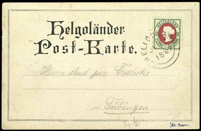 | Zusatzinformationen und Suchstichworte: | Dr. Reinhard Fischer 193. Auktion 21. - 22. Juli 2023 Los 343 Altdeutschland Helgoland 1875, 1 1/2 P/10 Pf. mittelgrün/mittellilakarmin auf dekorativer Ansichtskarte von Helgoland nach Tübingen gelaufen. Karte auf Motivseite leichte Falzspuren, ausführlicher Fotobefund Schulz BPP (..."farbfrische, gute Erhaltung...."). Mi.300,- Ausruf 50,00 EUR |