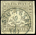 | Zusatzinformationen und Suchstichworte: | Dr. Reinhard Fischer 193. Auktion 21. - 22. Juli 2023 Los 1114 Altdeutschland Württemberg 1 Kreuzer hellgraubraun mit bayrischem Seidenfaden als amtlicher Neudruck - diese konnten zum Nennwert in Stuttgart beim Postamt 1 erworben werden und waren frankaturgültig, der Neudruck ist gestempelt sehr selten, hier zudem in tadelloser Erhaltung mit klarer Abstempelung. Fotoattest Irtenkauf BPP (2016): "echt und einwandfrei. Ein schönes Exemplar dieser Seltenheit Ausruf 850,00 EUR |