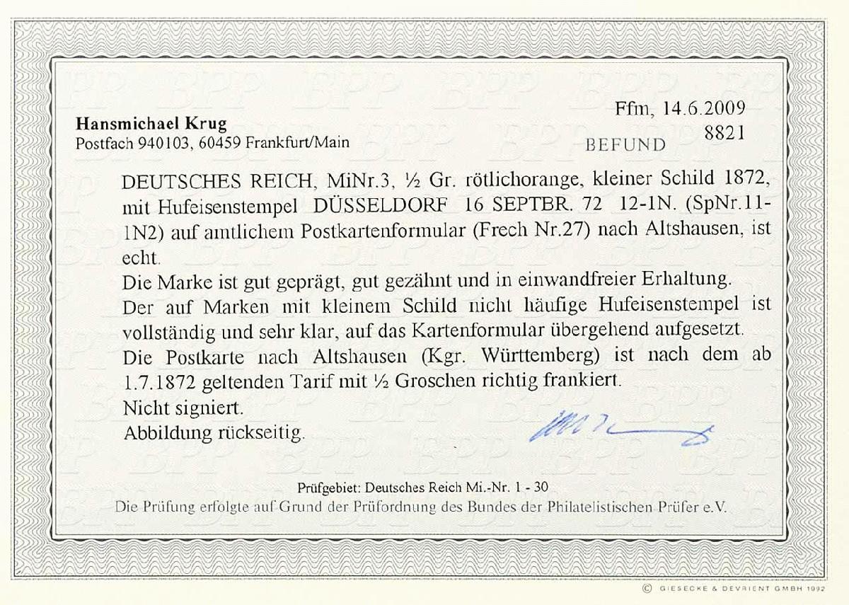 | Prüfgebiet: | Deutsches Reich 1871 - 1918 (Mi-Nr. 1 - 106) |