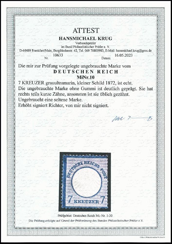 | Prüfgebiet: | Deutsches Reich 1871 - 1918 (Mi-Nr. 1 - 106) |
