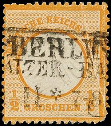 | Zusatzinformationen und Suchstichworte: | Dr. Reinhard Fischer 193. Auktion 21. - 22. Juli 2023 Los 1348 Deutsches Reich, 1872 Kleiner Brustschild 1/2 Gr. orange mit deutlicher Papierfalte rechts vom Kreis, gestempelt, Zahnfehler, Fotobefund Krug BPP Ausruf 35,00 EUR |
