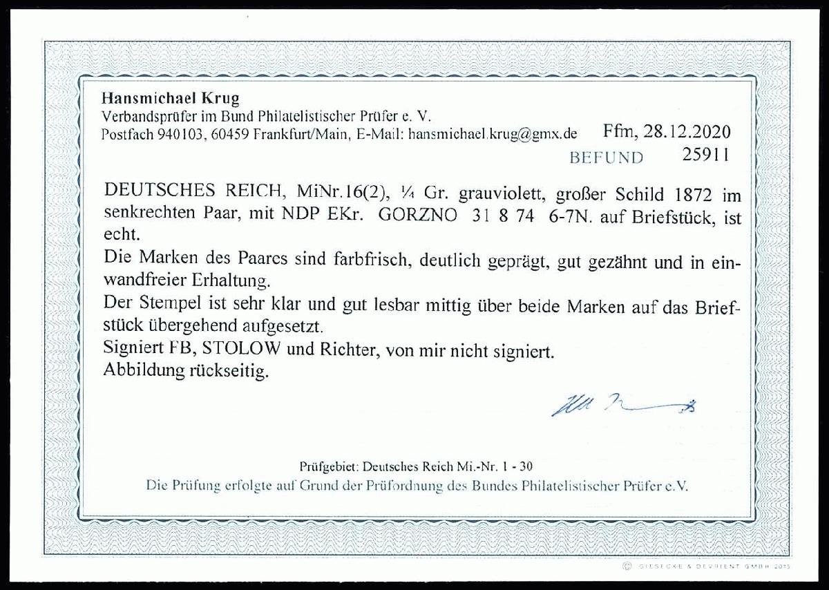 | Prüfer: | Krug, Hansmichael (BPP (Bund Philatelistischer Prüfer)) |