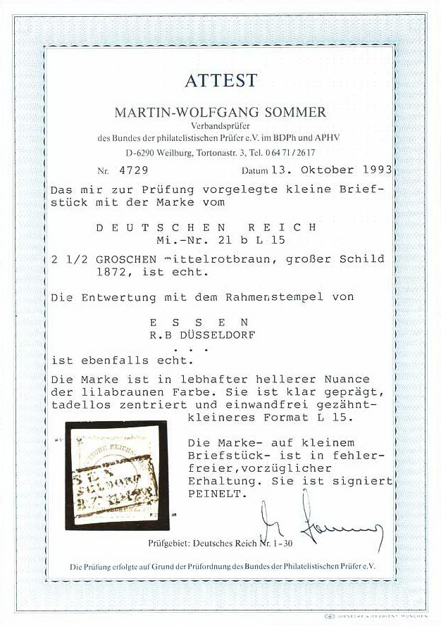 | Prüfer: | Sommer, Martin-Wolfgang (BPP (Bund Philatelistischer Prüfer)) |