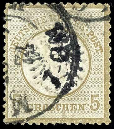 | Zusatzinformationen und Suchstichworte: | Dr. Reinhard Fischer 193. Auktion 21. - 22. Juli 2023 Los 1476 Deutsches Reich, 1872 Grosser Brustschild 5 Gr. ockerbraun, großer Schild, Plattenfehler II, etwas schwer gestempelt, ein kurzer Zahn und Bugspuren, Fotobefund Krug BPP, Mi. 280.- Ausruf 40,00 EUR |