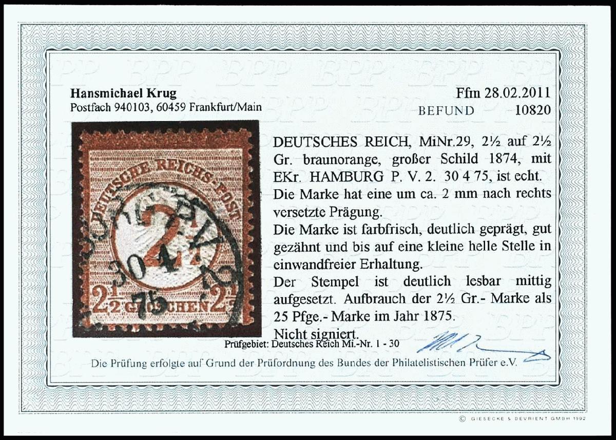 | Prüfgebiet: | Deutsches Reich 1871 - 1918 (Mi-Nr. 1 - 106) |