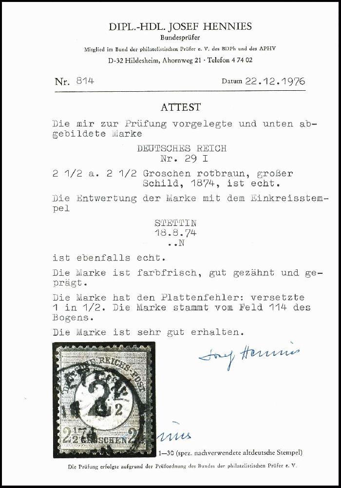 | Prüfer: | Hennies, Josef (BPP (Bund Philatelistischer Prüfer)) |