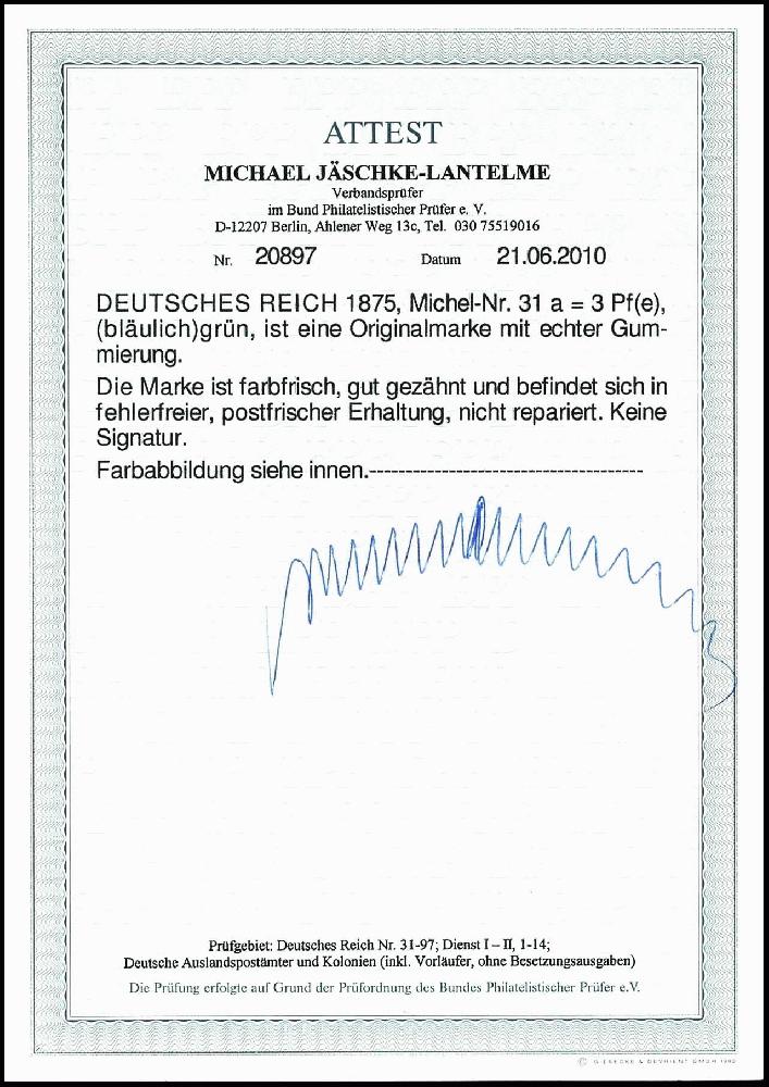 | Prüfgebiet: | Deutsches Reich 1871 - 1918 (Mi-Nr. 1 - 106) |