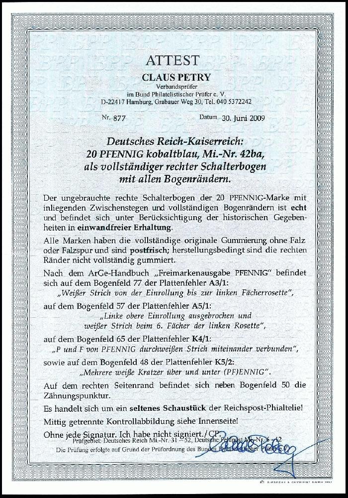| Prüfer: | Petry, Claus (BPP (Bund Philatelistischer Prüfer)) |
