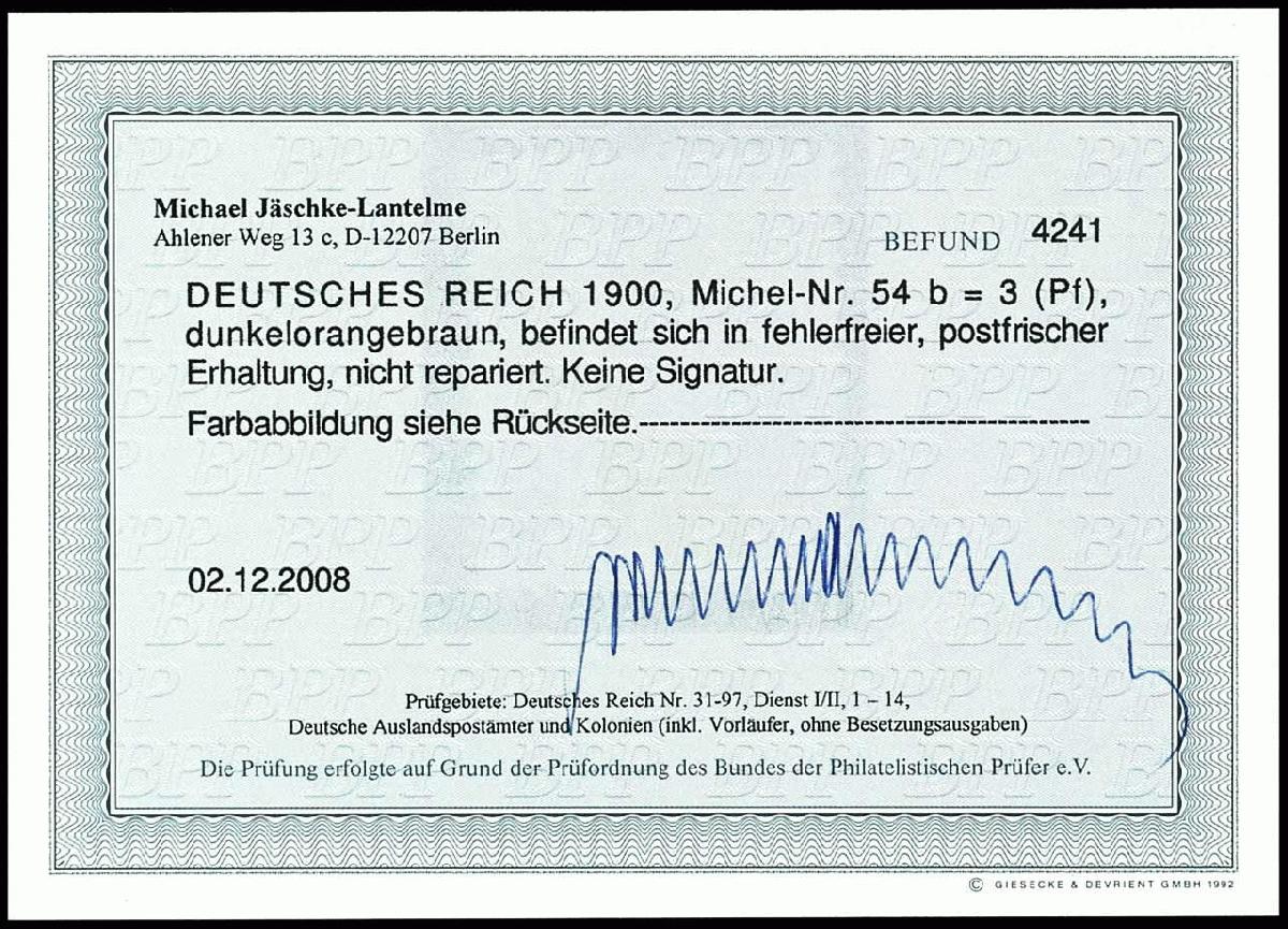 | Prüfgebiet: | Deutsches Reich 1871 - 1918 (Mi-Nr. 1 - 106) |