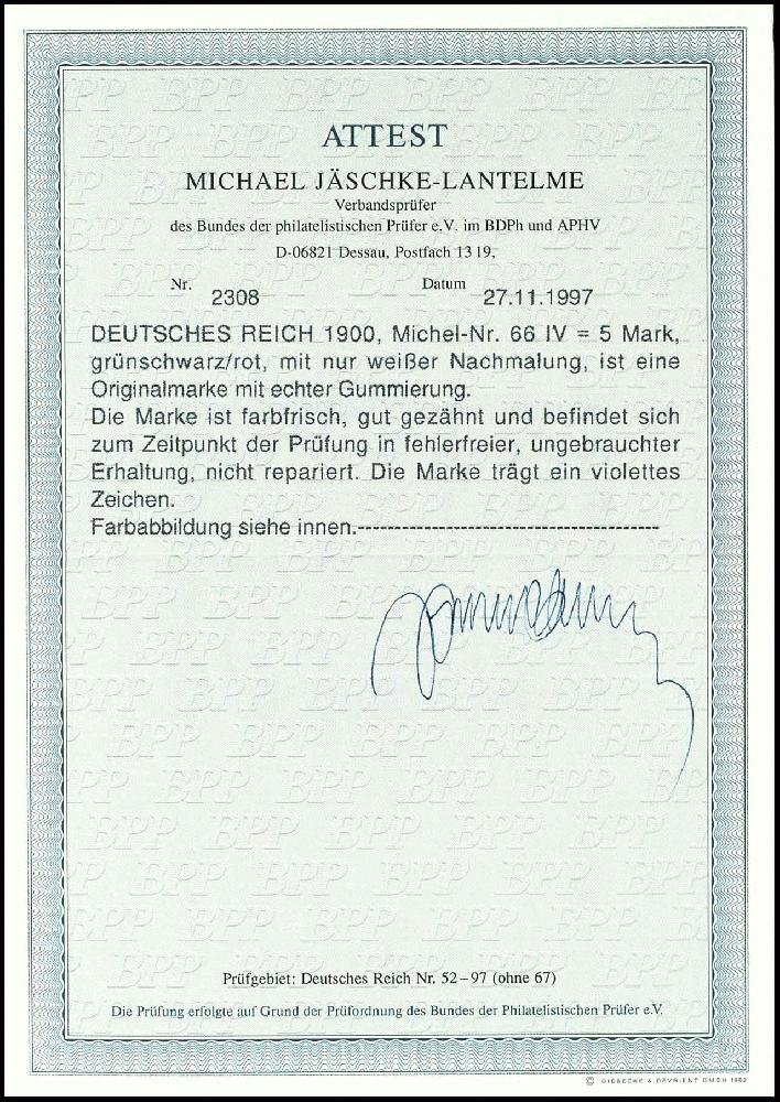| Prüfer: | Jäschke-Lantelme, Michael (BPP (Bund Philatelistischer Prüfer)) |