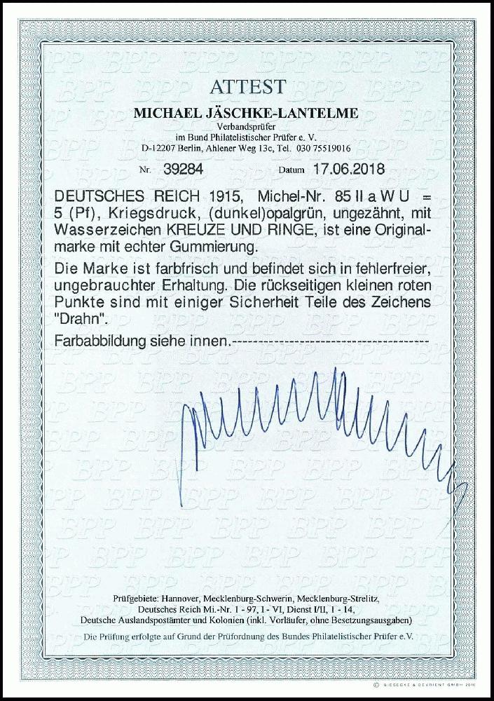| Prüfer: | Jäschke-Lantelme, Michael (BPP (Bund Philatelistischer Prüfer)) |