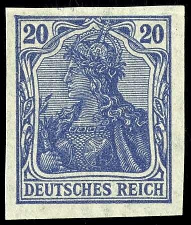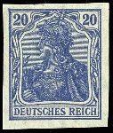| Zusatzinformationen und Suchstichworte: | Dr. Reinhard Fischer 193. Auktion 21. - 22. Juli 2023 Los 1627 Deutsches Reich, Germania mit WZ 20 Pfennig Germania, dunkelviolettblau Kriegsdruck, Abart "ungezähnt", ungebraucht mit Originalgummierung in farbfrischer, breitrandiger und unsignierter Erhaltung, Fotoattest Jäschke-Lantelme BPP "Ungebrauchte Exemplare dieses ungezähnten Wertes sind sehr selten." Ausruf 2.000,00 EUR |