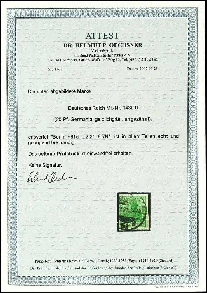 | Prüfer: | Oechsner, Helmut (BPP (Bund Philatelistischer Prüfer)) |