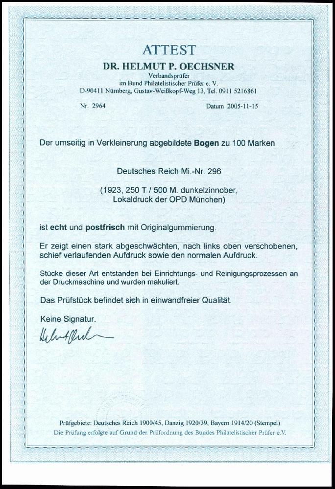 | Zusatzinformationen und Suchstichworte: | Dr. Reinhard Fischer 193. Auktion 21. - 22. Juli 2023 Los 1770 Deutsches Reich, 1918/23 Inflationsausgaben 250 Tausend auf 500 Mark dunkelzinnober, Druck der OPD München, die Marke zeigt einen stark abgeschwächten nach links oben verschobenen und schief verlaufenden Aufdruck sowie den normalen Aufdruck - solche Stücke entstanden bei Einrichtungs- und Reinigungsprozessen an der Druckmaschine und wurden makuliert, postfrisch, Attestkopie (für Einheit) Dr. Oechsner BPP Ausruf 100,00 EUR |