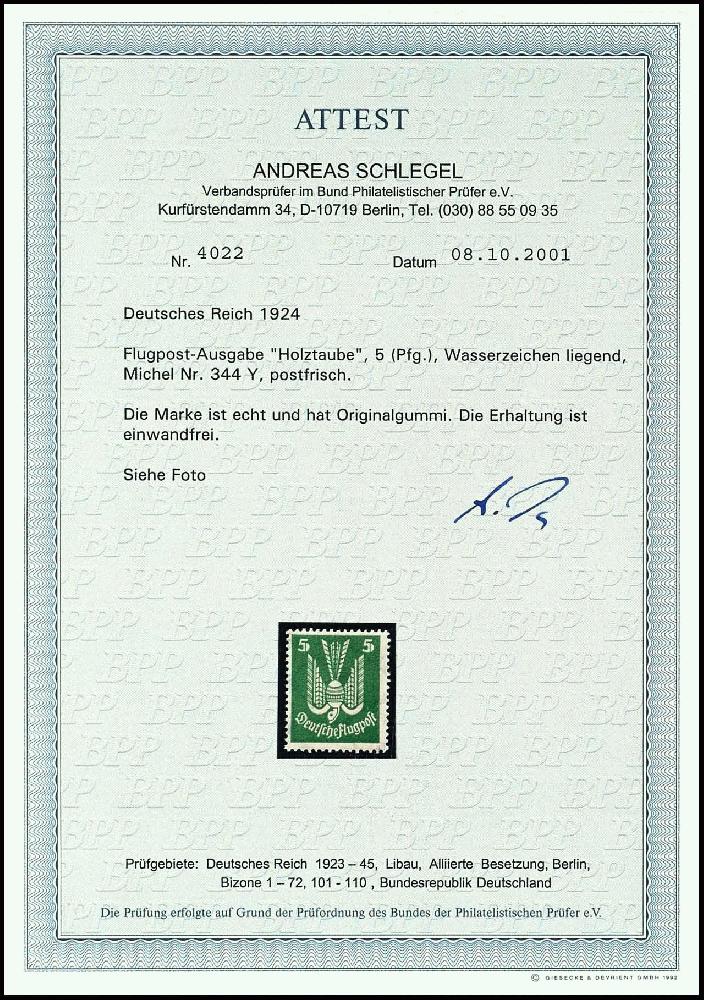 | Prüfer: | Schlegel, Andreas (BPP (Bund Philatelistischer Prüfer)) |