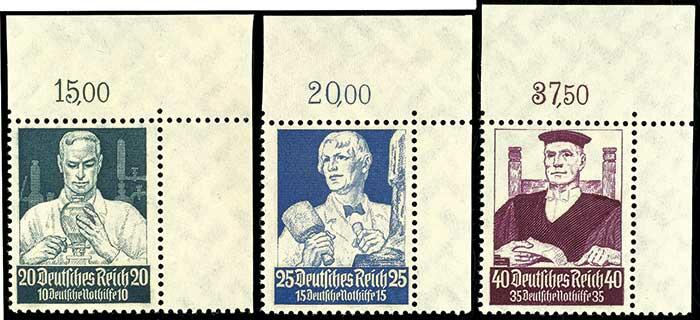 | Zusatzinformationen und Suchstichworte: | Dr. Reinhard Fischer 193. Auktion 21. - 22. Juli 2023 Los 1945 Deutsches Reich, 1933/45 Drittes Reich 3 Pfennig bis 40 Pfennig "Berufsstände", kompletter Satz mit 9 Werten, einheitlich vom Eckrand oben rechts, tadellos postfrisch, unsigniert, Fotoattest H.-D. Schlegel BPP: "Die Erhaltung ist einwandfrei." Ausruf 250,00 EUR |