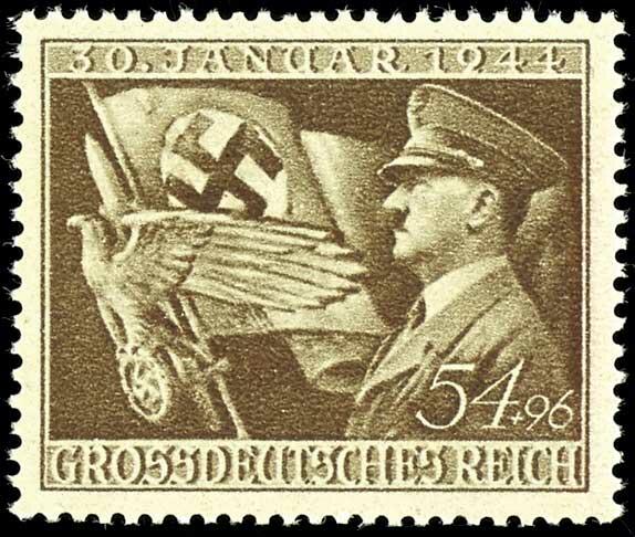 | Zusatzinformationen und Suchstichworte: | Dr. Reinhard Fischer 193. Auktion 21. - 22. Juli 2023 Los 2043 Deutsches Reich, 1933/45 Drittes Reich 54 Pfennig "11. Jahrestag der Machtergreifung durch Adolf Hitler", Farbprobedruck in dunkelockerbraun auf gummiertem Originalpapier, tadellos, unsigniert, Fotoattest H.-D. Schlegel BPP (2023): "Die Qualität ist einwandfrei." Ausruf 500,00 EUR |
