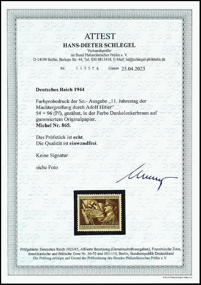 | Prüfgebiet: | Deutsches Reich Specimen, Probedrucke, Essay, Maschinenprobe |