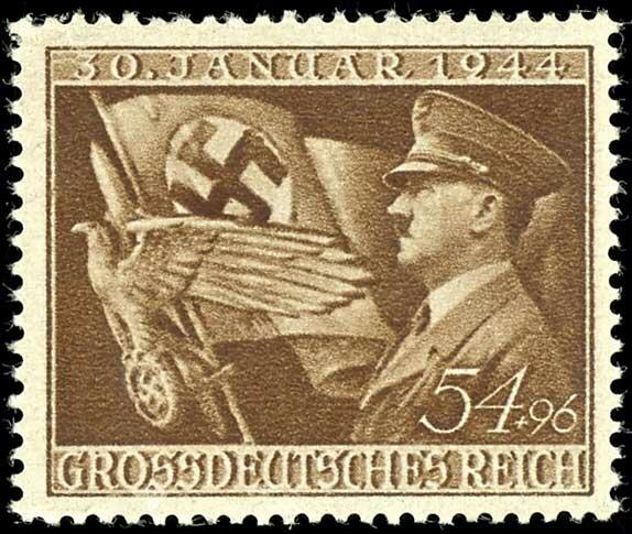 | Zusatzinformationen und Suchstichworte: | Dr. Reinhard Fischer 193. Auktion 21. - 22. Juli 2023 Los 2044 Deutsches Reich, 1933/45 Drittes Reich 54 Pfennig "11. Jahrestag der Machtergreifung durch Adolf Hitler", Farbprobedruck in dunkelorangebraun auf gummiertem Originalpapier, tadellos, unsigniert, Fotoattest H.-D. Schlegel BPP (2023): "Die Qualität ist einwandfrei." Ausruf 500,00 EUR |