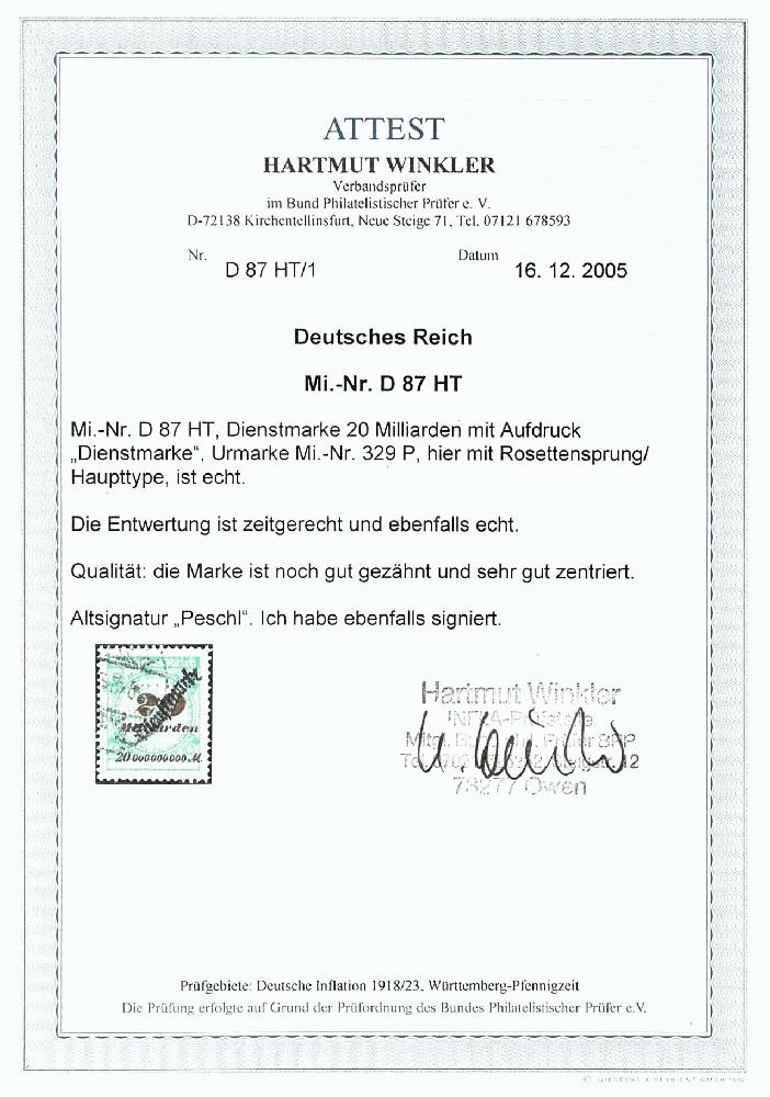 | Prüfgebiet: | Deutsches Reich Dienstmarken 1874 - 1945 |