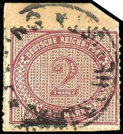 | Zusatzinformationen und Suchstichworte: | Dr. Reinhard Fischer 193. Auktion 21. - 22. Juli 2023 Los 2395 Deutsche Auslandspost China, Vorläufer 2 Mark dunkelrotkarmin, Plattenfehler V "große Unterbrechung in der Guilloche unten links", entwertet mit seltenem sog. Weichholzstempel "PEKING DEUTSCHE POST" ohne Datum auf Briefstück, rechts etwas mangelhafte Zähnung sonst tadellos, Fotoattest Ronald F. Steuer BPP (2023) Ausruf 200,00 EUR |