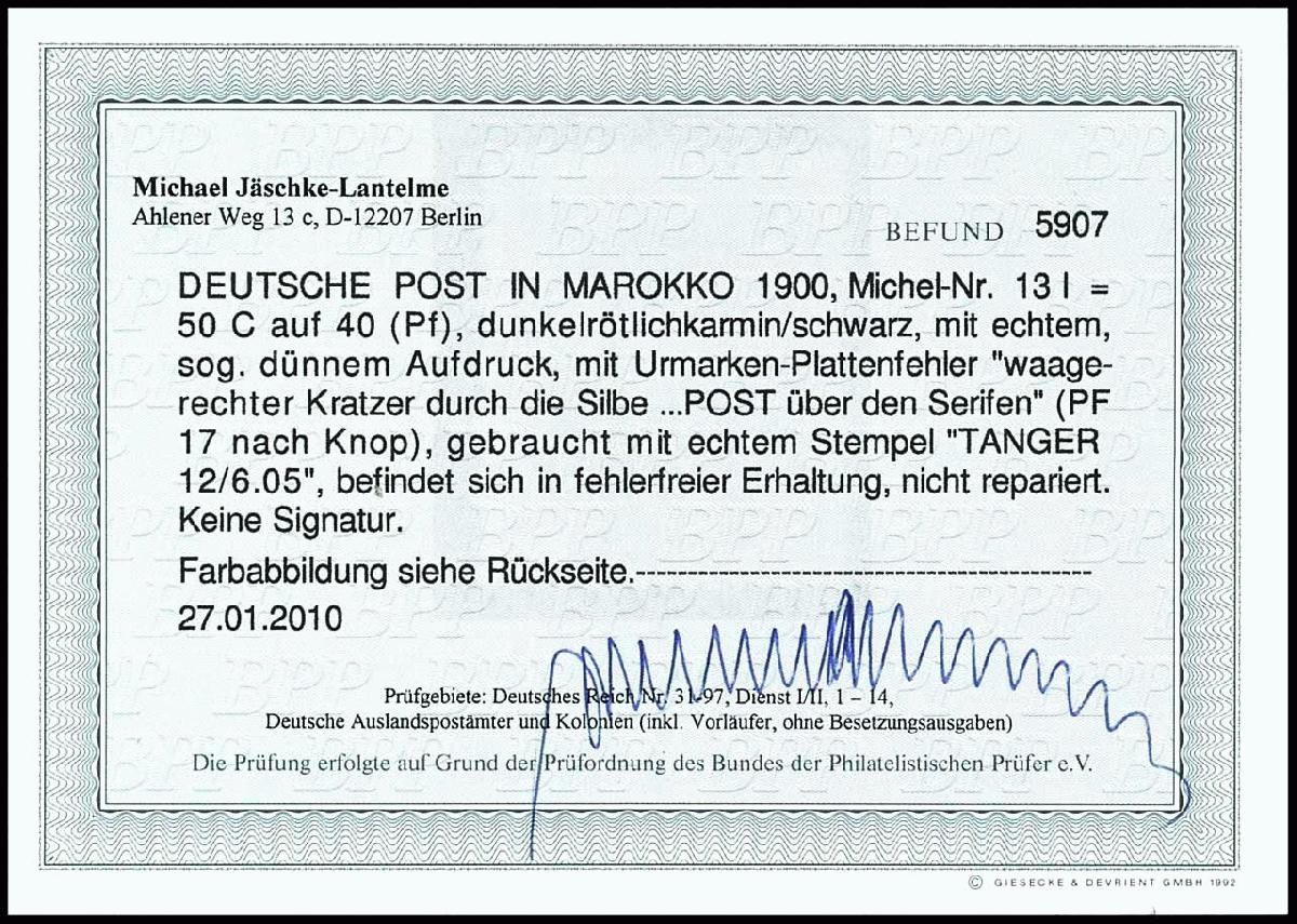 | Prüfgebiet: | Deutsche Auslandspostämter Marokko |