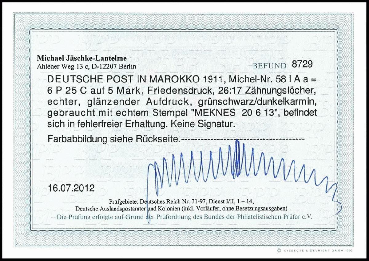 | Prüfgebiet: | Deutsche Auslandspostämter Marokko |