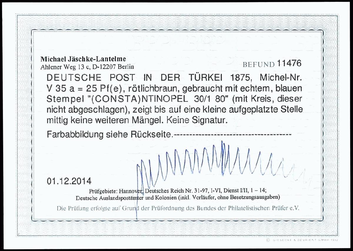 | Prüfgebiet: | Deutsche Auslandspostämter Türkei |