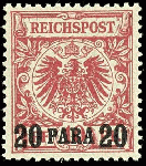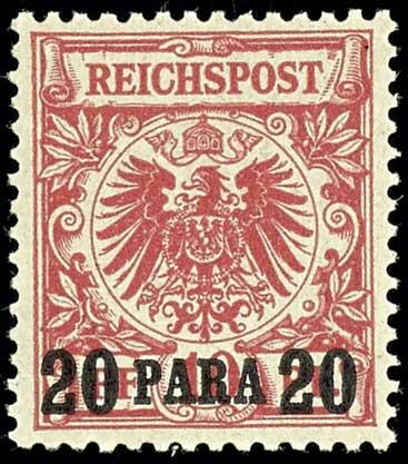 | Zusatzinformationen und Suchstichworte: | Dr. Reinhard Fischer 193. Auktion 21. - 22. Juli 2023 Los 2697 Deutsche Auslandspost Türkei 10 Pfennig "Krone/Adler" mit Aufdruck 20 PARA, postfrisches Luxusstück dieser in nur wenigen Stücken bekannt gewordenen Marke in postfrischer Erhaltung. Absolute Rarität, die im Michel neu aufgenommene Notierung von 4500,- kann nur als erster Bewertungsversuch gesehen werden Ausruf 2.500,00 EUR |