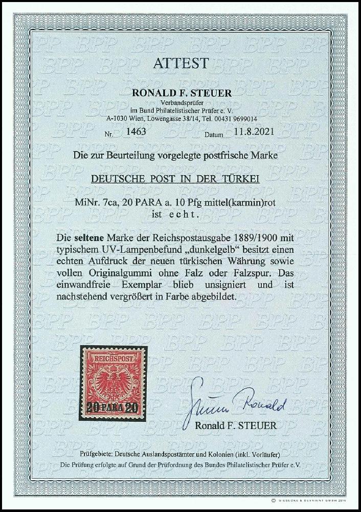 | Prüfer: | Steuer, Ronald F. (BPP (Bund Philatelistischer Prüfer)) |