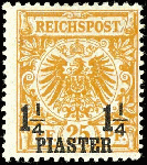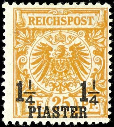 | Zusatzinformationen und Suchstichworte: | Dr. Reinhard Fischer 193. Auktion 21. - 22. Juli 2023 Los 2710 Deutsche Auslandspost Türkei 25 Pfennig Krone/Adler mit Aufdruck "1 1/4 PIASTER", tadellos ungebraucht, Fotoattest Jäschke-L. BPP, Mi. 1.000.- Ausruf 200,00 EUR |