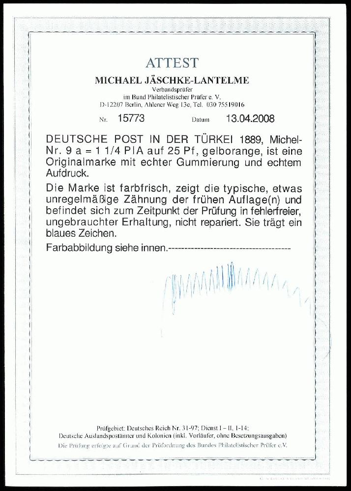 | Prüfgebiet: | Deutsche Auslandspostämter Türkei |