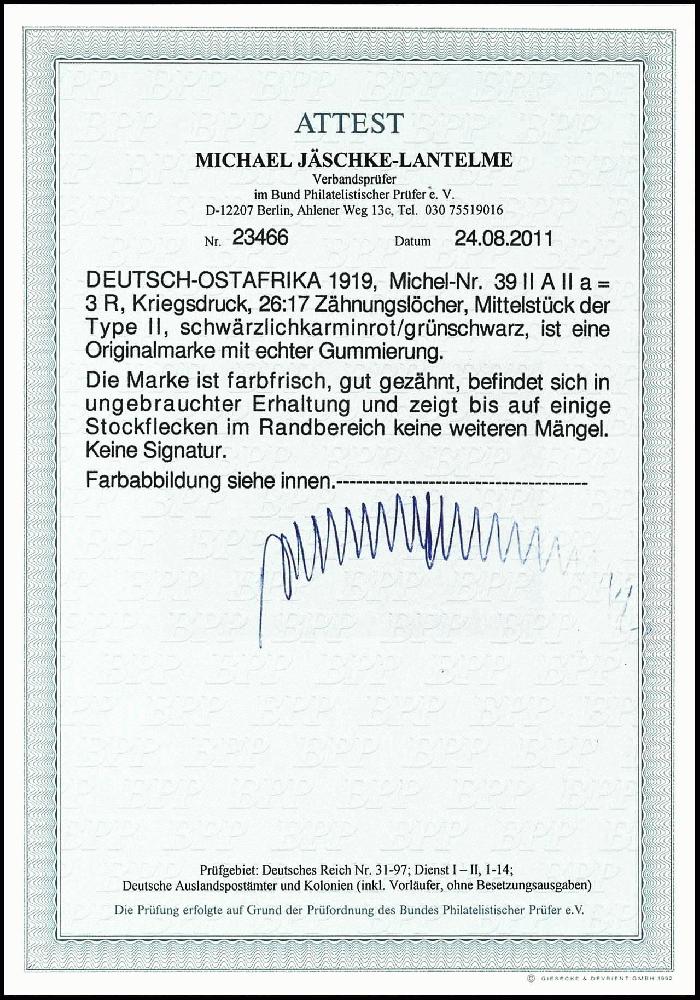 | Prüfer: | Jäschke-Lantelme, Michael (BPP (Bund Philatelistischer Prüfer)) |