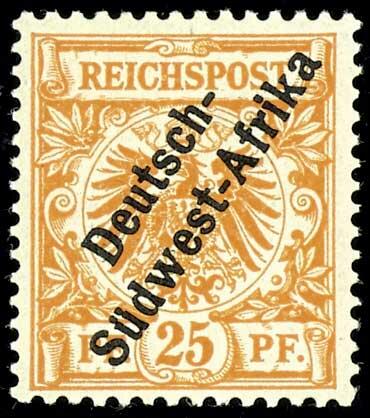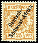 | Zusatzinformationen und Suchstichworte: | Dr. Reinhard Fischer 193. Auktion 21. - 22. Juli 2023 Los 3197 Deutsche Kolonien Südwestafrika 25 Pfennig Krone/Adler mit Aufdruck " Deutsch-Südwest-Afrika ", postfrisch, tadellose Erhaltung, Fotobefund Czimmek BPP: "echt und ohne Fehler", Mi. 750.- Ausruf 220,00 EUR |