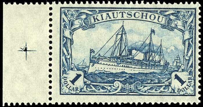 | Zusatzinformationen und Suchstichworte: | Dr. Reinhard Fischer 193. Auktion 21. - 22. Juli 2023 Los 3497 Deutsche Kolonien Kiautschou 1 Dollar Kaiseryacht, Kriegsdruck, A-Zähnung mit Plattenfehler I "Wertziffer 1 kreuzweise schraffiert", tadellos postfrisch, unsigniert, vom Bogenrand links mit Passerkreuz (der Ordnung halber erwähnen wir das der Rand vorgefaltet ist), Fotoattest Michael Jäschke-Lantelme BPP (2024): "in fehlerfreier, postfrischer Erhaltung.", Mi. 1.000.- schon für die billigste Sorte ! Ausruf 400,00 EUR |