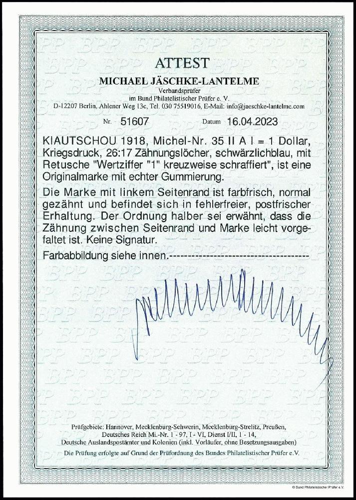 | Prüfer: | Jäschke-Lantelme, Michael (BPP (Bund Philatelistischer Prüfer)) |