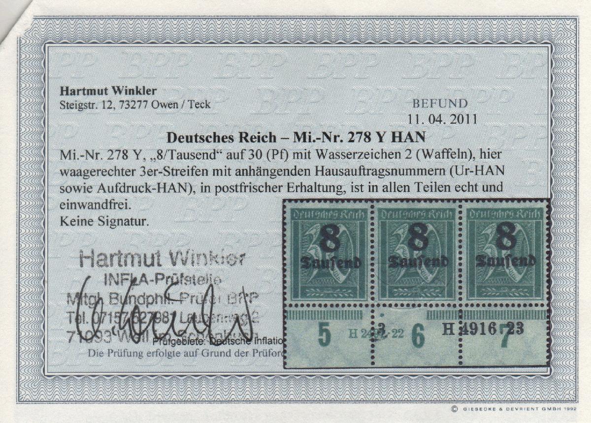 | Prüfgebiet: | Deutsches Reich 1919 - 1923 (Mi-Nr. 107 - 343) |