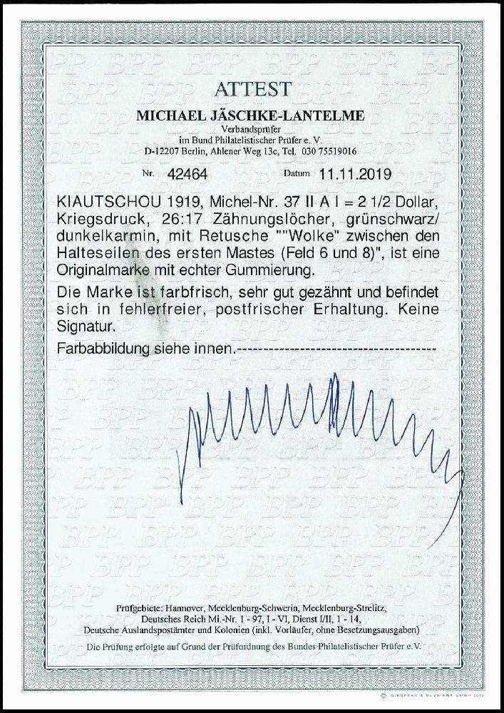 | Prüfer: | Jäschke-Lantelme, Michael (BPP (Bund Philatelistischer Prüfer)) |