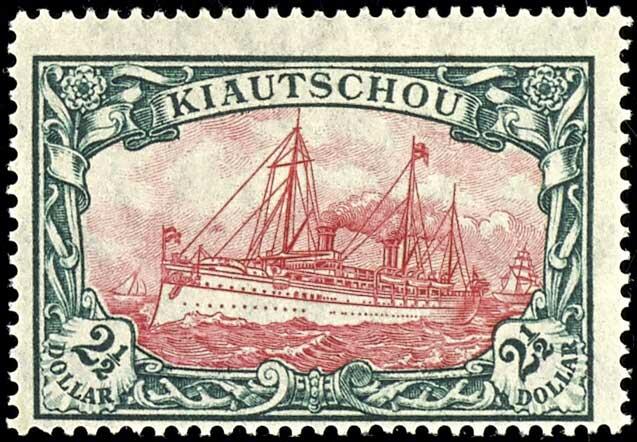 | Zusatzinformationen und Suchstichworte: | Dr. Reinhard Fischer 193. Auktion 21. - 22. Juli 2023 Los 3503 Deutsche Kolonien Kiautschou 2 1/2 Dollar Kaiseryacht, Kriegsdruck, 26 : 17 Zähnungslöcher, mit Retusche "Wolke" zwischen den Halteseilen des ersten Mastes (Feld 6,8), nur in einer späten Teilauflage vorkommend, bisher nur 4 ** und 1 * Exemplar bekannt, unsigniert, Fotoattest Jäschke-Lantelme BPP (2019): "in fehlerfreier, postfrischer Erhaltung." Ausruf 1.200,00 EUR |