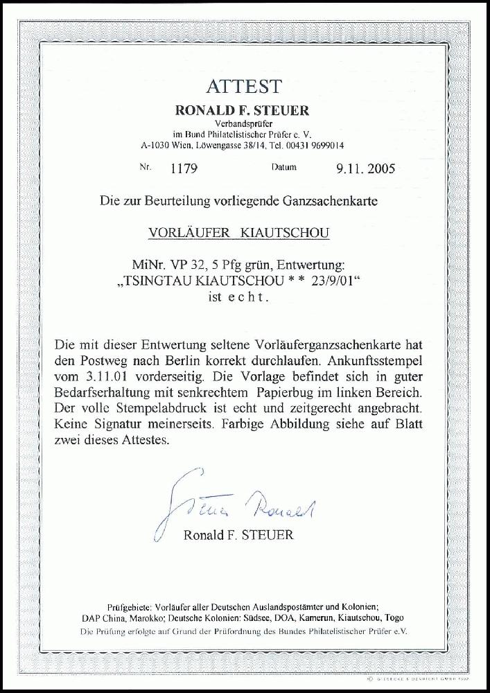 | Prüfgebiet: | Deutsche Kolonien Kiautschou |