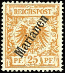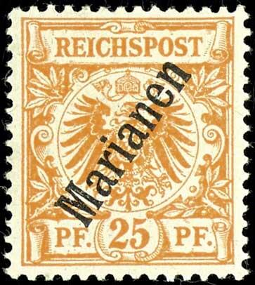 | Zusatzinformationen und Suchstichworte: | Dr. Reinhard Fischer 193. Auktion 21. - 22. Juli 2023 Los 3521 Deutsche Kolonien Marianen 25 Pfennig Krone/Adler gelblichorange, steiler Aufdruck "Karolinen", Plattenfehler II "I oben gespalten", tadellos ungebraucht, Fotobefund Jäschke-Lantelme BPP, Mi. 350.- Ausruf 70,00 EUR |