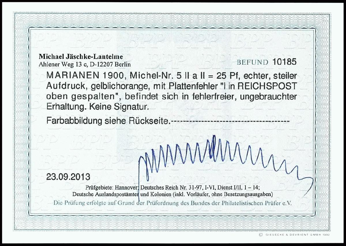 | Prüfer: | Jäschke-Lantelme, Michael (BPP (Bund Philatelistischer Prüfer)) |