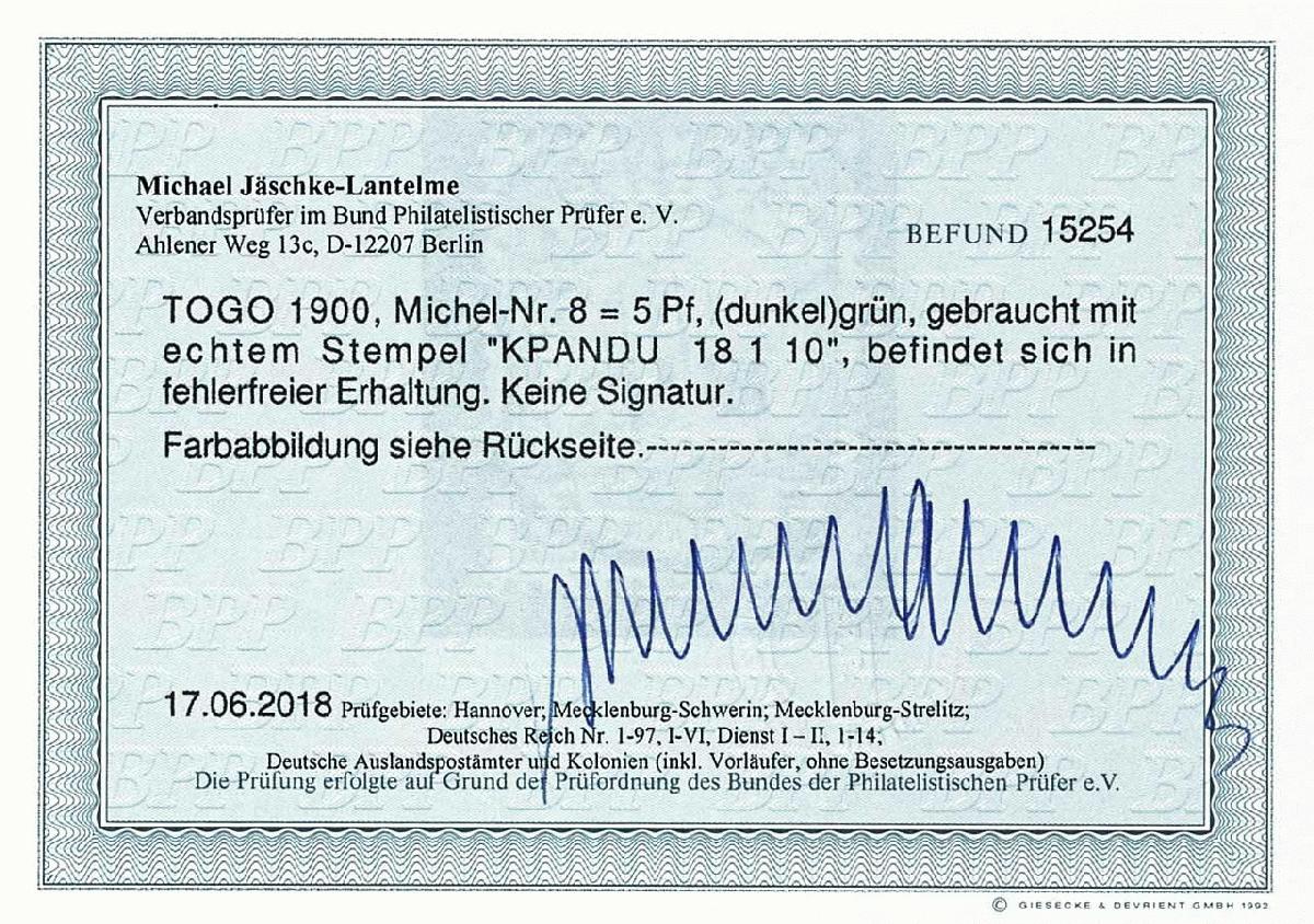 | Prüfgebiet: | Deutsche Kolonien Togo |
