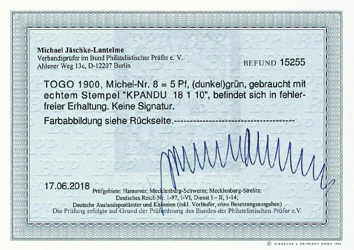 | Prüfgebiet: | Deutsche Kolonien Togo |