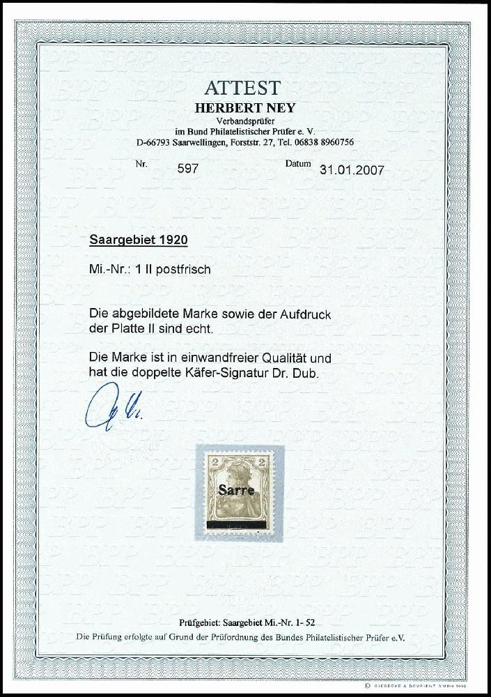 | Zusatzinformationen und Suchstichworte: | Dr. Reinhard Fischer 193. Auktion 21. - 22. Juli 2023 Los 4267 Saar 2 Pfg. Germania, Aufdruck Type II, postfrisch, gepr. Dr.Dub (Käferzeichen), Fotoattest BPP Ney: "echt und einwandfrei", Mi. 450,- Ausruf 100,00 EUR |