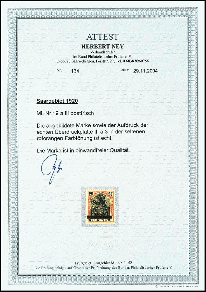 | Prüfgebiet: | Saargebiet (Mi-Nr. 1 - 205) |