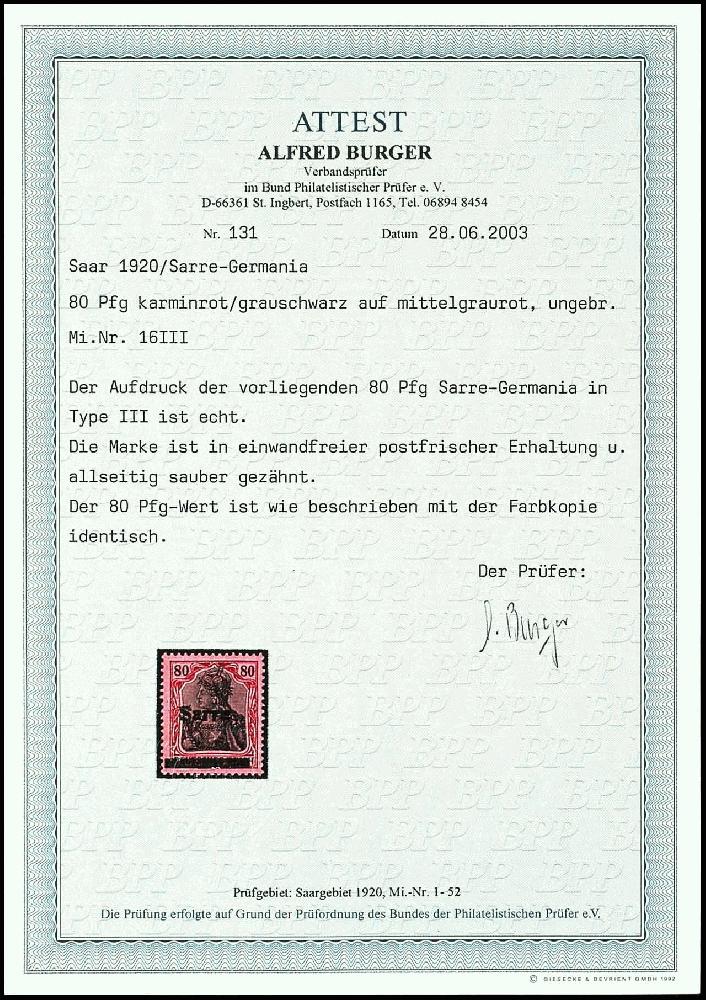 | Prüfer: | Burger, Alfred (BPP (Bund Philatelistischer Prüfer)) |