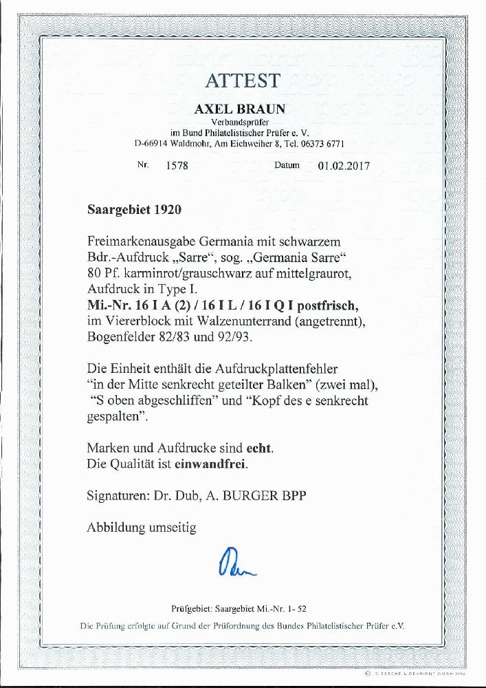 | Prüfer: | Braun, Axel (BPP (Bund Philatelistischer Prüfer)) |